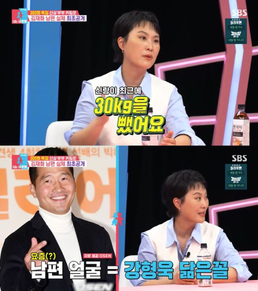 이날 김재화는 남편에 대해 "최근에 30㎏를 뺐다. 요즘 살을 하도 빼서 강형욱 선생님 닮았다"고 말했다.