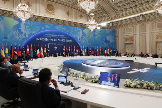 윤 대통령은 모두발언에서 “오늘 회의는 양측 협력의 새로운 시작을 알리는 중요한 이정표가 될 것”이라며 “태평양이라는 광활한 바다에서 한배를 탄 이웃인 한국과 태평양도서국이 공동번영을 위해 힘차게 항해해나가길 기대한다”고 말했다.