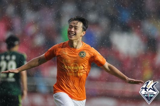 포항 고영준이 29일 전북전에서 선제골을 넣은 뒤 환호하고 있다. 제공 | 한국프로축구연맹 |