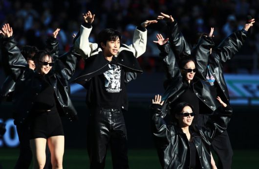 가수 임영웅이 8일 오후 마포구 상암동 서울월드컵경기장에서 열린 2023 하나원큐 K리그1 6라운드 FC서울과 대구FC의 경기 하프타임에 팬들을 위한 공연을 펼치고 있다. 중학교 때까지 축구 선수를 했던 임영웅은 이날 시축뿐 아니라 경기장을 찾은 팬들에게 직접 감사의 마음을 담아 노래를 선물하고, 경기도 끝까지 관람한다. 한편 임영웅 팬클럽 '영웅시대'는 공지를 통해 "(8일) 경기의 드레스 코드는 하늘색을 제외한 자율 복장"이라면서 "영웅시대를 드러내는 의상을 입고 싶겠지만 축구 팬덤의 또 다른 문화를 존중하고 지켜주시길 부탁드린다"고 남겼으며, 골대 뒤 양 팀 서포터들을 배려해 구매하지 않는 등 축구 팬들을 존중하는 모습을 보였다. 2023.4.8/뉴스1 /사진=뉴스1화상 |