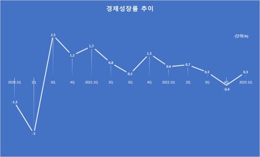 올해 1분기 우리 경제의 실질 국내총생산(GDP)이 전분기 대비 0.3% 증가하는데 그쳤다. 1분기 성장률은 경제협력개발기구(OECD) 회원국 평균(0.4%)에도 미치지 못한데다 현재까지 분기 성장률이 발표된 30개국 중 16위에 불과하다. 지난해 3분기(0.3%)와 4분기(-0.4%)에 이어 3개 분기 연속 OECD 회원국 평균치를 하회하는 것이다.