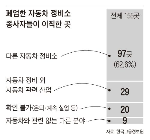 A씨 사례는 전기차 보급 확대로 위기에 몰린 제주도 자동차 정비업계의 현실을 단적으로 보여준다. 고용노동부 산하 한국고용정보원은 제주도에서 2016~2022년 사이 폐업한 정비소 근로자 155명의 진로를 고용보험 자료를 통해 추적했다. 이들은 도내 정비소 44곳에서 일했다.