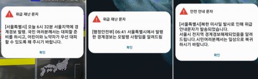 서울시 ‘경계경보 발령’, 행안부 ‘오발령 안내’, 서울시 ‘경계경보 해제’까지 당국이 차례로 엇박자를 내면서 시민들은 큰 혼란을 겪었다.