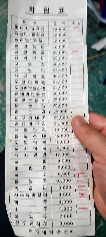 이후 강 건너 다른 식당을 방문한 A씨는 “일반 식당은 전부 문 닫거나 영업 종료됐다 하고 전문적으로 야시장 장사하는 식당 두어 곳이 장사하고 있어, 한 곳에서 바로 양부터 물어봤다”며 “옆 테이블만큼 준다고 하길래 뒤도 안 돌아보고 바로 시켰다”고 적었다.