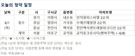 부동산 정보업체 부동산R114에 따르면 1일인 오늘은 경기 의왕시 내손동 '인덕원 퍼스비엘'이 2순위 청약을 받는다.