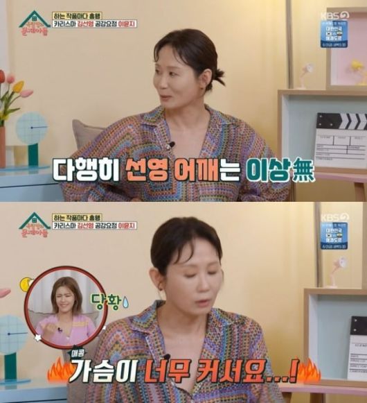 또 김선영은 “여배우가 왜 몸 관리를 하는 건지 모르겠다. 건강하면 되는 거다. 저는 필라테스도 어깨 석회와 목 디스크로 하는 거지, 고통받고 싶지 않다”라고 해 모두의 박수를 받았다.