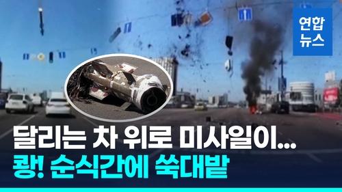 다행히 차들과의 충돌은 피했지만, 미사일이 바닥에 떨어져 폭발하면서 파편이 사방으로 튀고 화염이 치솟는 등 도로는 순식간에 쑥대밭이 됐습니다.