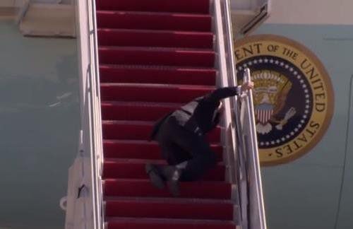 전용기 오르다 발 헛디뎌 넘어진 조 바이든 미국 대통령. 유튜브 화면 캡처 |