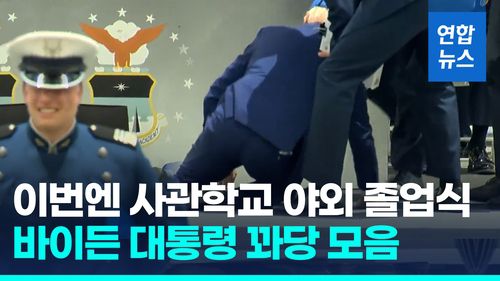 1일(현지시간) 백악관 공동취재단에 따르면 바이든 대통령은 이날 콜로라도주(州) 콜로라도스프링스의 공군사관학교에서 열린 야외 졸업식 행사에서 연설 후 생도들에게 졸업장을 수여하고 자리로 돌아가다 바닥에 있는 검은 모래주머니에 발이 걸려 넘어졌는데요.