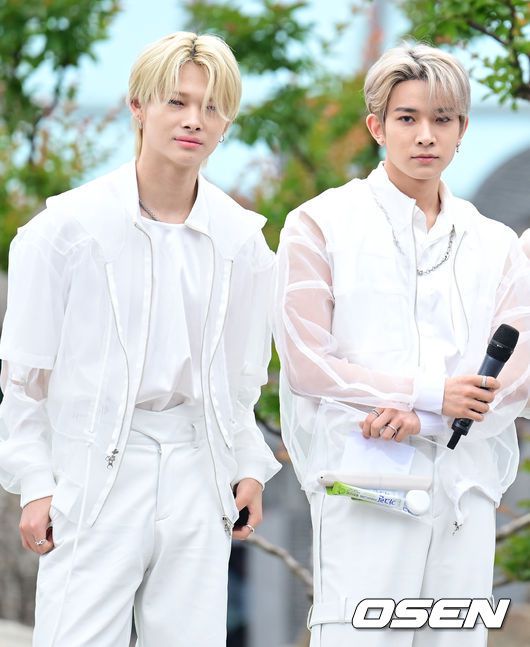 [OSEN=김성락 기자] 2일 오전 서울 영등포구 KBS에서 그룹 엔하이픈(ENHYPEN)의 팬미팅 행사가 열렸다. 엔하이픈 니키, 희승이 팬을 바라보고 있다. 2023.06.02 /ksl0919@osen.co.kr