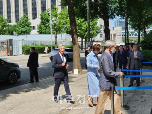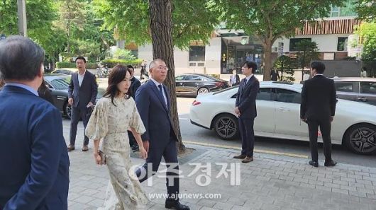 조현민 한진 사장는 차에서 내려 빠른 걸음으로 들어갔다. 권오갑 HD현대 회장과 박종복 SC제일은행장, 정상혁 신한은행장을 비롯해 여야 국회의원들도 자리를 빛냈다.