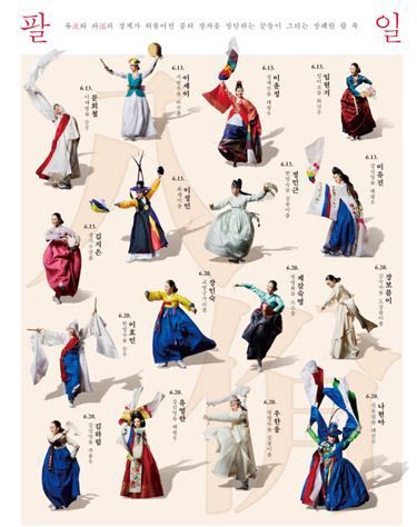 ‘팔일’ 시리즈는 차세대 춤꾼들의 춤판을 통해 류(流)와 파(派)의 경계를 허무는 다양한 전통춤을 한 자리에서 즐길 수 있도록 기획된 공연이다. 지금껏 전통춤은 각 유파별 명무(名舞)의 계보를 중심으로 전승돼 왔다. ‘팔일’ 시리즈는 국가무형문화재 종목으로 지정된 살풀이춤· 승무· 태평무는 물론 화선무· 버꾸춤 등 다양한 전통춤을 류와 파의 경계없이 다채롭게 보여준다.