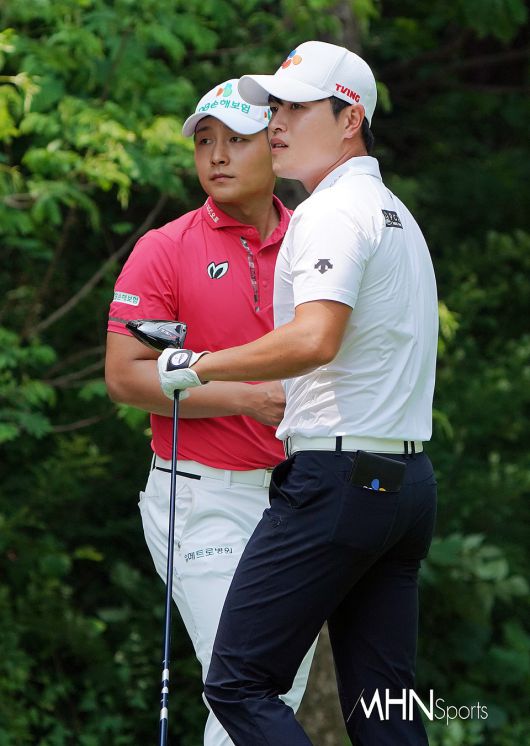2일 충북 충주시 킹스데일GC 레이크, 힐코스(파72. 6,696야드)에서 2023시즌 KPGA 코리안투어 '제13회 데상트코리아 매치플레이(총상금 8원 원, 우승상금 1.6억 원)' 조별리그 3경기가 열렸다. 이날 선수들이 4번 홀에 있다. <저작권자 Copyright ⓒ MHN스포츠 / MHN엔터테인먼트 무단전재 및 재배포 금지>