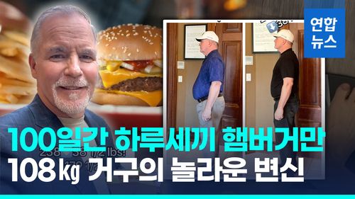 (서울=연합뉴스) 미국에서 100일 동안 맥도날드 햄버거만 먹고 30㎏ 가까이 체중 감량에 성공했다는 남성이 등장했습니다.