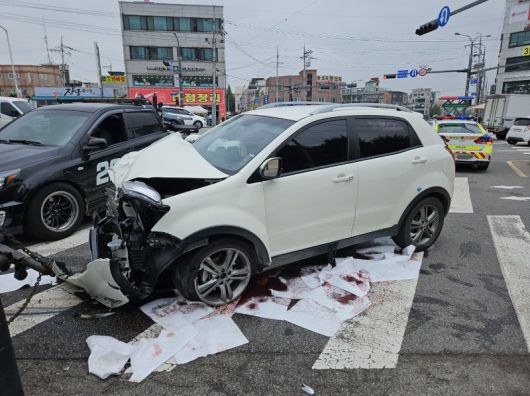 코란도 차량은 사고 이후에도 정차하지 않고 계속 운행해 다른 방향으로 주행하던 차량 2대의 측면을 들이받는 2차 사고를 내고 멈췄다.