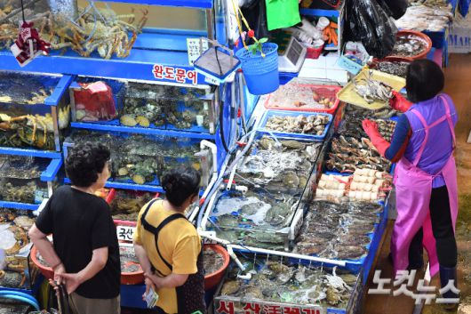 서울 동작구 노량진 수산시장에 상인들이 수산물을 판매하고 있다. 류영주 기자 |