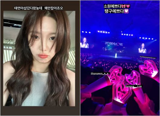 또 수영은 "소원 예쁘다. 탱구 예쁘다"라는 글과 함께 이날 공연을 함께 본 효연, 윤아, 티파니영의 계정을 태그해 공연장에서 촬영한 응원봉 인증샷도 게재해 훈훈함을 더했다.