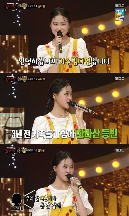 아쉽게 패한 곰 세마리의 정체는 TV조선 '미스트롯' 출신 가수 김다현이었다. 올해 15살이 된 김다현은 김봉곤 훈장의 셋째딸로도 유명하다.