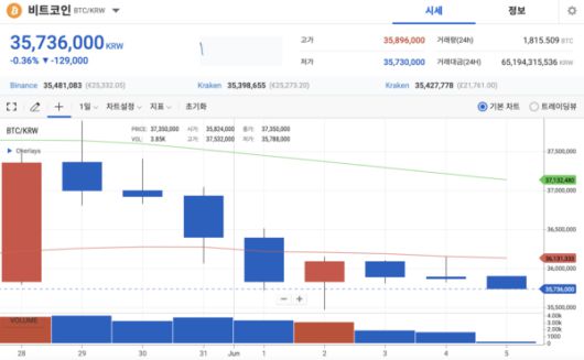 가상자산 거래소 업비트에 따르면 5일 오전 9시 기준 비트코인 전일 동시간 대비 0.1% 하락한 개당 3586만3000원애 거래됐다. 이더리움도 전일 동시간 대비 0.39% 하락한 개당 249만9000원애 거래돼 유의미한 가격변화를 보이지 않았다.