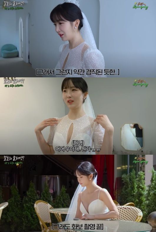 조현영은 여러 번의 웨딩 드레스를 갈아입으며 "드레스 입는 게 보통 일이 아니다"라고 중얼거렸다. PD가 "다른 신부들은 여기서 다른 샵 2개를 더 간다더라"라고 말하자 조현영은 고개를 절레절레 흔들며 "나는 못해.."라고 전했다.