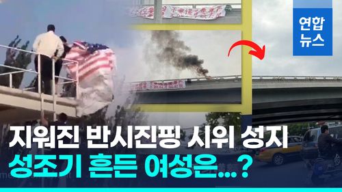 (서울=연합뉴스) 중국이 톈안먼 민주화시위 34주년을 앞두고 경계를 강화한 가운데 수도 베이징에서 미국 국기를 흔드는 1인 시위가 벌어졌습니다.