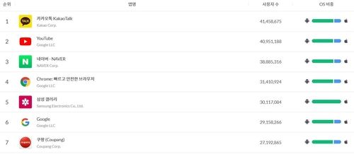 카톡과 유튜브 5월 MAU 격차, 50만명으로 역대 최소