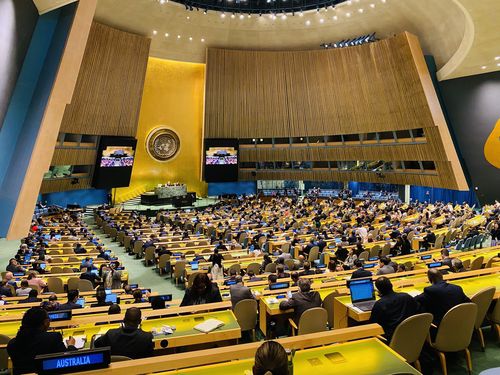 안보리 비상임이사국 선거 진행하는 유엔총회 회의 |