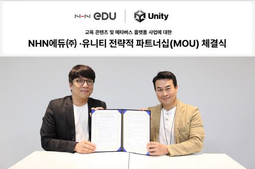 [이데일리 김가은 기자] NHN에듀는 유니티와 ‘교육 콘텐츠 및 메타버스 플랫폼 사업’에 대한 전략적 파트너십을 체결하고 협력에 나선다고 7일 밝혔다.