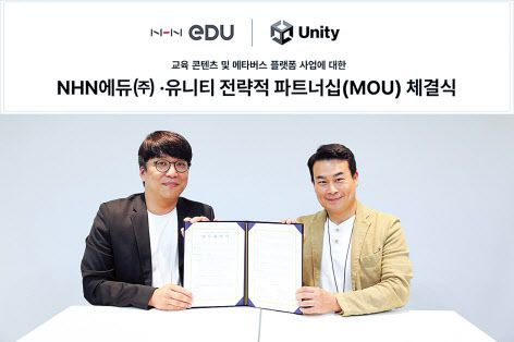 NHN에듀는 3D 콘텐츠 제작 플랫폼 유니티와 교육 메타버스 플랫폼 사업을 위한 업무협약을 맺었다고 7일 밝혔다.