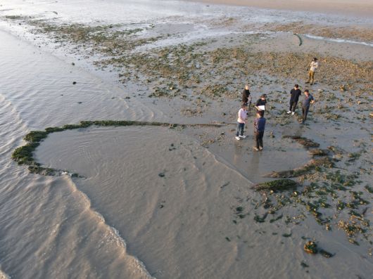 전남 해남군 송호리 해변에 고선박으로 추정되는 선체가 노출돼 있다. 국립해양문화재연구소는 26일 발굴조사를 시작한다. 국립해양문화재연구소 제공 |