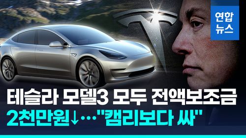 (서울=연합뉴스) 미국 자동차시장에서 테슬라 세단 모델3 전 차종이 인플레이션 감축법(IRA)에 따른 보조금 전액 지급 대상에 포함됐습니다.