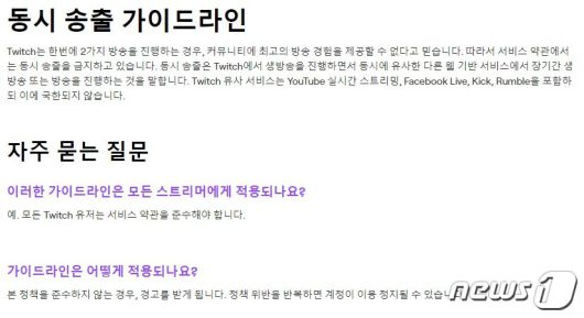 트위치(Twitch) 동시송출 가이드라인 (트위치 공지사항 갈무리) |