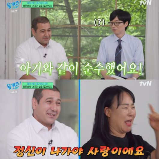 7일에 방송된 tvN ‘유 퀴즈 온 더 블럭’(이하 ‘유퀴즈’)에서는 ‘포기하지 마’ 특집으로 꾸며진 가운데 이란에서 한국으로 온 지 25년 된 카리미 안왈이 등장했다. 유재석은 “국경을 넘어 뼛속 깊이 한국에 스며든 구수한 입담의 소유자 카리미 안왈 씨다”라며 그를 소개했다. 이어 “생로병사의 비밀에 출연해 화제가 됐다”라며 ‘3주간 술을 끊어보니 편’을 언급했다. 그러면서 “이란에서는 술을 금기시 하지 않냐”라고 물었고, 카리미 안왈은 “개종을 했다”라고 답했다.