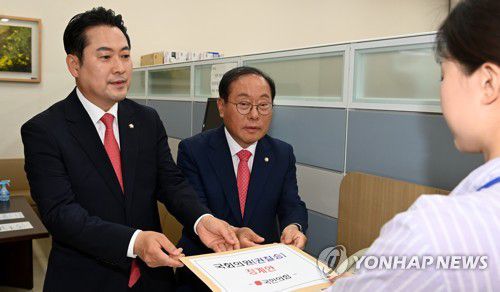 (서울=연합뉴스) 하사헌 기자 = 국민의힘 임병헌 원내부대표(오른쪽)와 장동혁 원내대변인이 8일 오전 서울 여의도 국회 의안과에 더불어민주당 권칠승 의원에 대한 징계안을 제출하고 있다. 2023.6.8 [공동취재] toadboy@yna.co.kr ▶제보는 카카오톡 okjebo▶연합뉴스 앱 지금 바로 다운받기~▶네이버 연합뉴스 채널 구독하기 <저작권자(c)연합뉴스. 무단전재-재배포금지.>