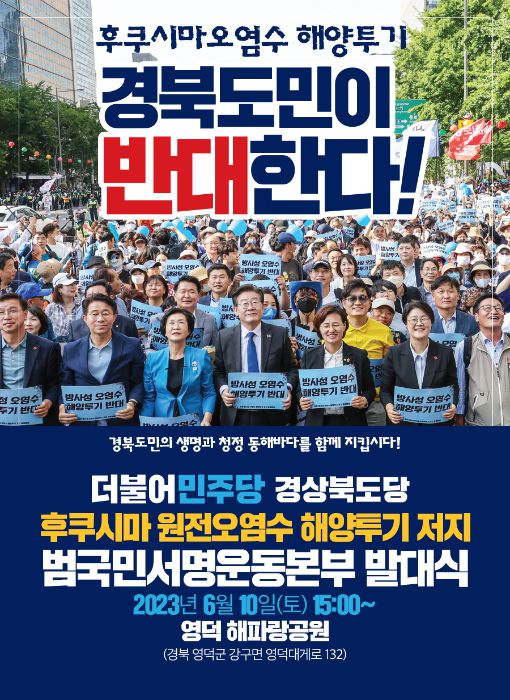 경북도당은 10일 오후 3시 영덕 해파랑공원에서 '후쿠시마 오염수 해양 투기 저지 범국민서명운동본부 발대식'을 연다고 8일 밝혔다.
