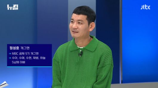 지난 3일 방송된 JTBC '뉴스룸'의 '뉴썰' 코너에는 개그맨 정성호가 출연해 저출생에 대한 이야기를 나눴다.
