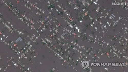 (서울=연합뉴스) 이도연 기자 = 러시아 점령지인 우크라이나 남부 헤르손주의 대형 댐이 파괴되면서 이 일대 마을이 물에 완전히 잠긴 모습이 위성사진을 통해 드러났다.