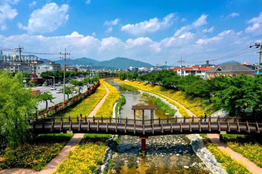 시는 2021년 하소천변을 정비하고 금계국 25만포기를 심었다. 포기당 40송이 이상의 꽃을 피우는 금계국은 최근 1000만 송이가 만개해 황금빛 물결을 출렁이고 있다.
