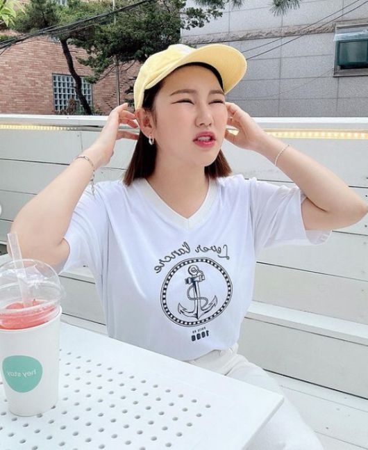 사진 속 송가인은 깜찍한 옐로우 캡모자에 하얀 반팔티를 착용하여 귀여운 코디를 자랑했다. 솔직하게 더위를 담아낸 찡그린 표정조차 귀여운 매력을 뿜어낸다.