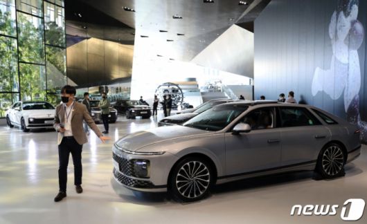 (고양=뉴스1) 구윤성 기자 = 14일 오후 경기 고양시 현대모터스튜디오 고양에서 열린 ‘디 올 뉴 그랜저 온라인 컨퍼런스 및 실차 전시’ 행사에 7세대 그랜저가 전시돼 있다. 2022.11.14/뉴스1 Copyright (C) 뉴스1. All rights reserved. 무단 전재 및 재배포 금지. |