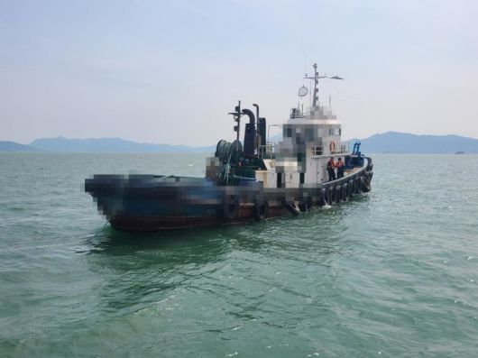 음주운항으로 적발된 예인선. 경남 사천해양경찰서 제공 |