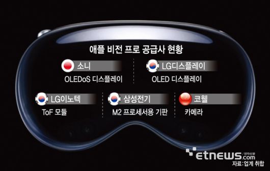비전 프로에는 동작과 공간 등을 인식하기 위해 다수의 카메라와 센서가 들어갔는데, 이 중 비행시간측정(ToF) 모듈을 LG이노텍이 맡은 것으로 알려졌다. ToF는 피사체에 광원을 쏜 후 되돌아오는 시간이나 변형 정도를 측정해서 거리, 입체감 등을 파악하는 부품이다. 애플은 2020년 아이폰12부터 ToF를 첫 탑재했다. LG이노텍은 이 때부터 ToF를 만들어 납품했다. LG이노텍은 광학 부품 쪽 애플 최대 협력사다. 정밀 제조가 필요해 후면 카메라, ToF 등 고성능 광학 부품은 LG이노텍이 사실상 전담했다. LG이노텍은 고부가 부품에 집중하기 위해 비전 프로에 탑재되는 카메라 대신 ToF만 담당한 것으로 알려졌다. 비전 프로 카메라는 중국 코웰이 맡는다. 코웰은 주로 아이폰 전면 카메라를 생산한 곳이다. 애플 발표에 따르면 비전 프로는 12개의 카메라, 5개의 센서, 6개의 마이크를 통해 콘텐츠를 사용자 눈 앞에서 구현한다.