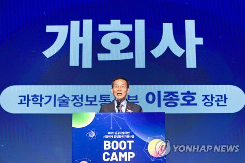 (서울=연합뉴스) 이종호 과학기술정보통신부 장관이 8일 서울 종로구 성균관대학교 600주년 기념관 조병두국제홀에서 열린 '2023 실험실창업탐색팀 발대식'에서 개회사를 하고 있다. 2023.6.8 [과학기술정보통신부 제공. 재판매 및 DB 금지]
