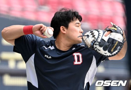 [OSEN=잠실, 조은정 기자]8일 잠실구장에서 2023 신한은행 SOL KBO리그 두산 베어스와 한화 이글스의 경기가 열린다. 경기 전 두산 안승한이 훈련을 하고 있다. 2023.06.08 /cej@osen.co.kr