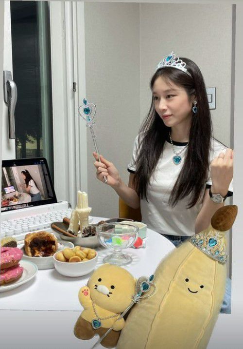 지연은 7일 인스타그램에 서른상 생일을 맞아 찍은 기념사진을 올렸다. 그는 집에서 차린 간소한 생일상 앞에서 공주놀이 장난감세트를 착용한 채 장난스러운 포즈를 취하고 있다.