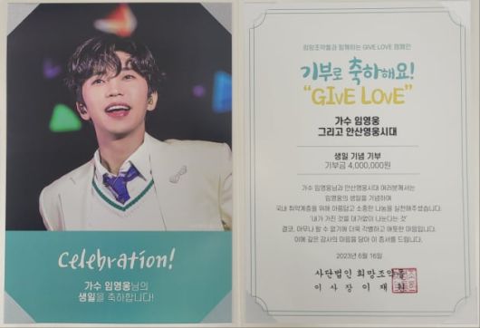 앞으로도 임영웅의 선한 영향력을 본받어 지속적으로 취약 계층에 기부할것이라고 전했다.