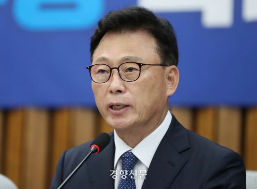 박광온 더불어민주당 원내대표가 9일 국회에서 열린 확대간부회의에서 발언하고 있다. 박민규 선임기자