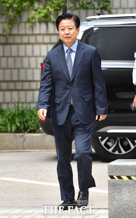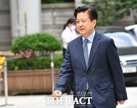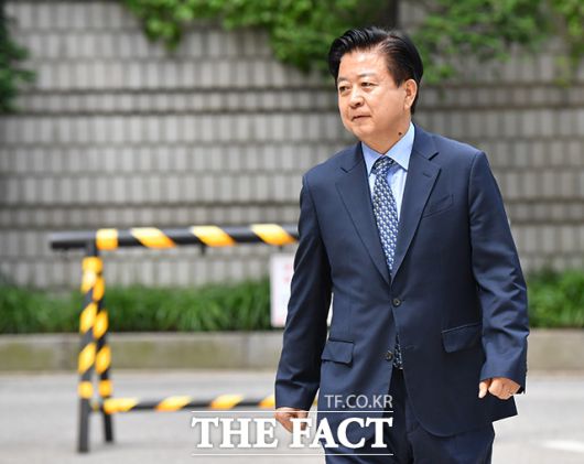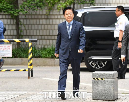 [더팩트ㅣ박헌우 기자] 노웅래 더불어민주당 의원이 9일 오전 서울 서초구 서울중앙지방법원에서 열린 뇌물수수 및 정치자금 위반 등 혐의 공판에 출석하고 있다.