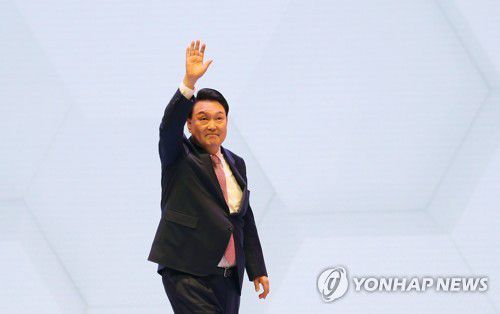 (춘천=연합뉴스) 임헌정 기자 = 윤석열 대통령이 9일 강원 춘천시 강원대학교 백령아트센터에서 열린 강원특별자치도 출범 기념식에서 축사를 마친 뒤 손을 들어 인사하고 있다. 2023.6.9 [대통령실통신사진기자단] kane@yna.co.kr ▶제보는 카카오톡 okjebo▶연합뉴스 앱 지금 바로 다운받기~▶네이버 연합뉴스 채널 구독하기 <저작권자(c)연합뉴스. 무단전재-재배포금지.>