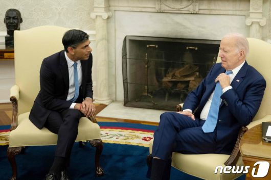 조 바이든 미국 대통령이 8일 (현지시간) 워싱턴 백악관에서 리시 수낵 영국 총리와 회담을 하고 있다. 2023.6.9 ⓒ AFP=뉴스1 ⓒ News1 우동명 기자 |